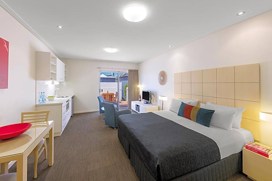 This studio features an open plan bedroom with a seating/dining area with tea/coffee making facilities, microwave and toaster. Free parking for 1 car is included.